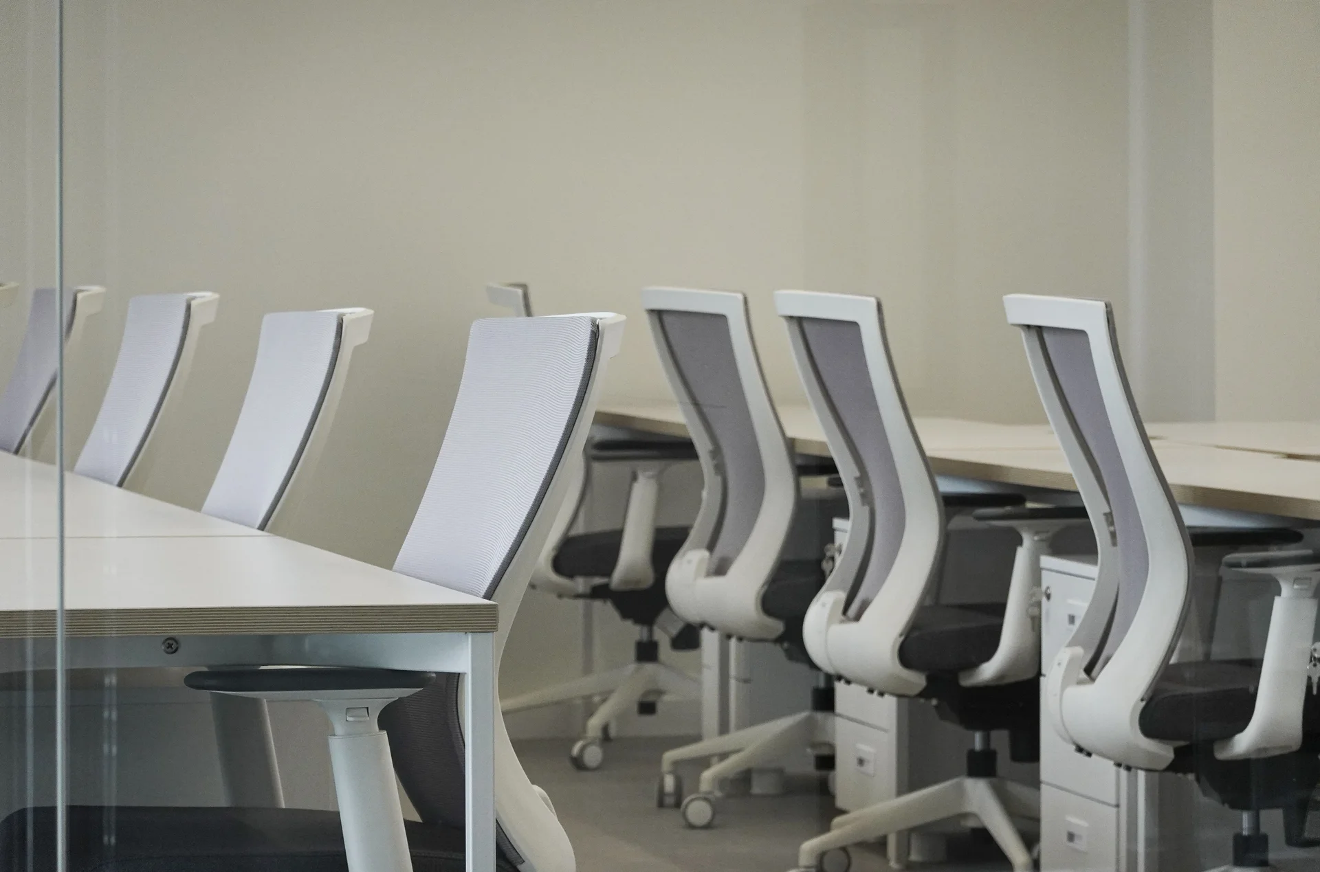 구성원이 창문을 ‘옆으로’ 볼 수 있게 좌석을 배치하는 것이 좋습니다. 창문을 정면으로 바라보면 블라인드가 있어도 눈이 부시고, 등지면 모니터에 햇빛이 비치기 때문이에요.