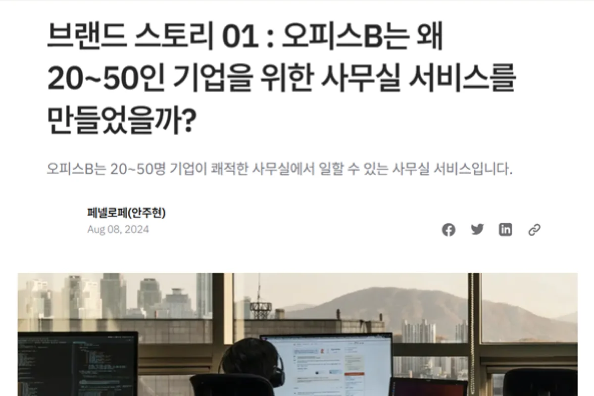 다시 꺼내보는 1년 전 질문 오피스B는 왜 20~50인 기업을 위한 사무실 서비스를 만들었을까요?