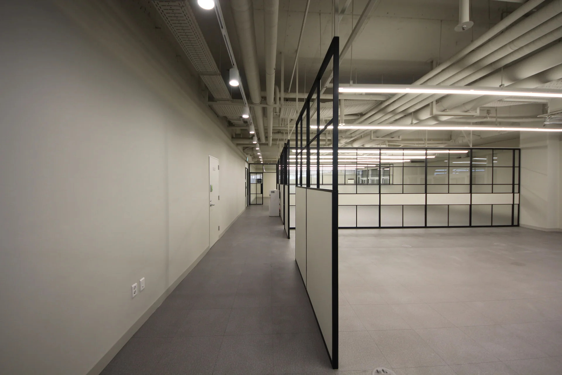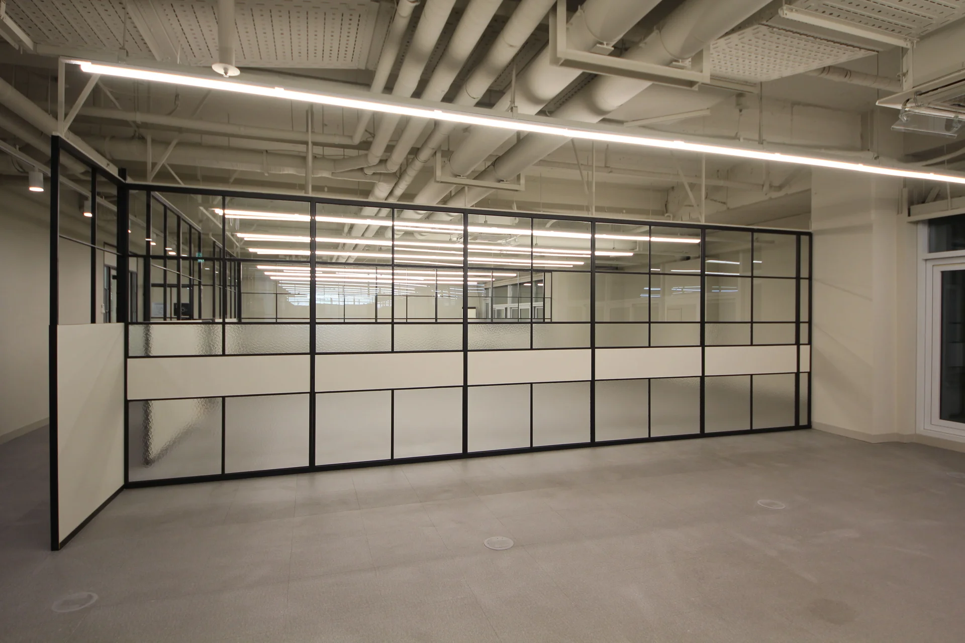 벽체 시공 시 '유리 벽'은 비용을 낮출 수 있는 최선의 선택입니다. 하지만 방음 면에서 완벽하지 않으므로, 보안이나 소음 관리가 중요한 기업은 유리보다는 벽체로 마감하는 것이 좋습니다.